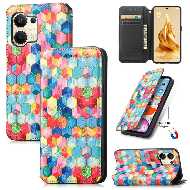 For OPPO Reno9 CaseNeo Colorful Magnetic Leather Phone Case(Magic Space)