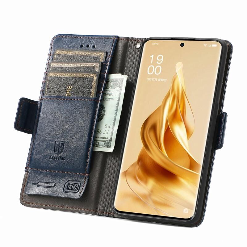 Για OPPO Reno9 CaseNeo Splicing Διπλή μαγνητική πόρπη δερμάτινη θήκη τηλεφώνου (μπλε)