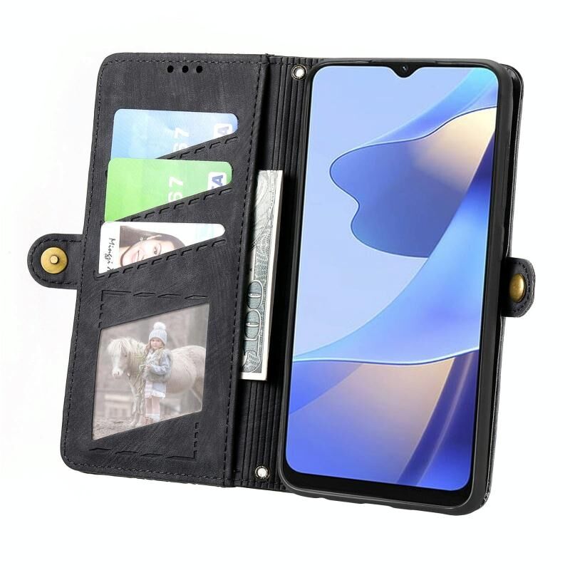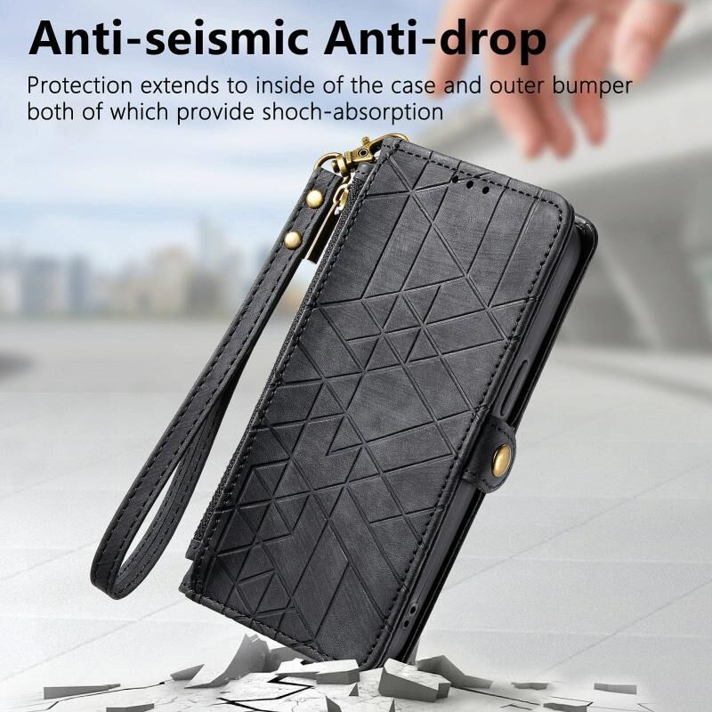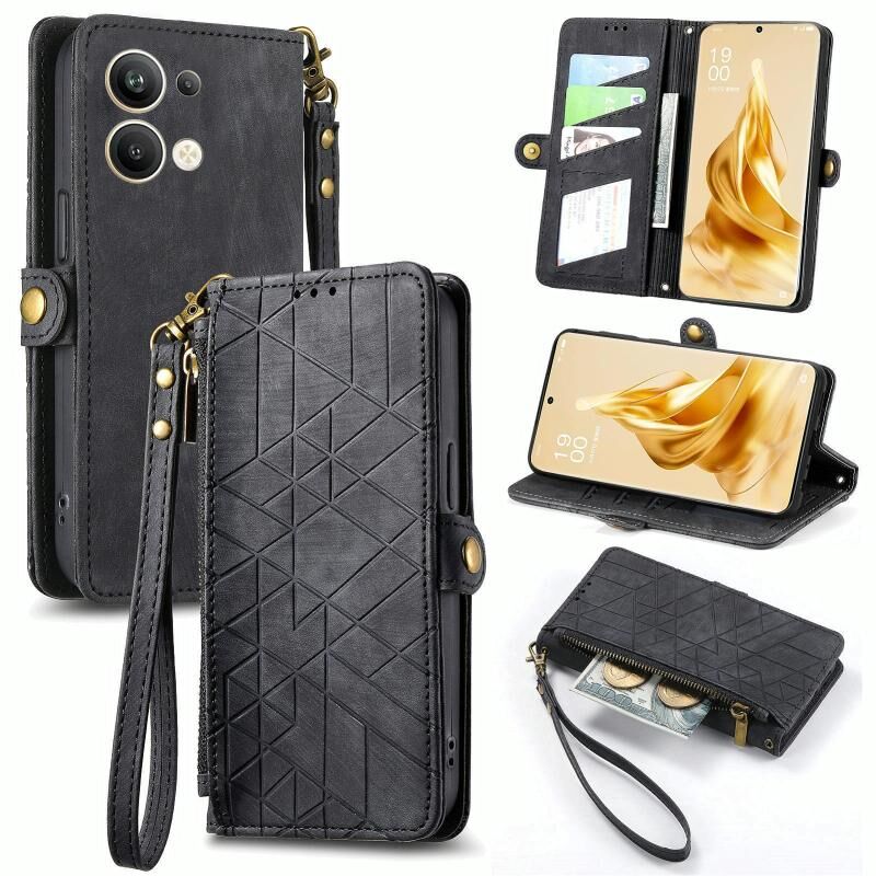 Για OPPO Reno9 Pro + 5G γεωμετρική φερμουάρ πορτοφόλι πλευρά πόρπη δερμάτινη θήκη τηλεφώνου (Μαύρο)