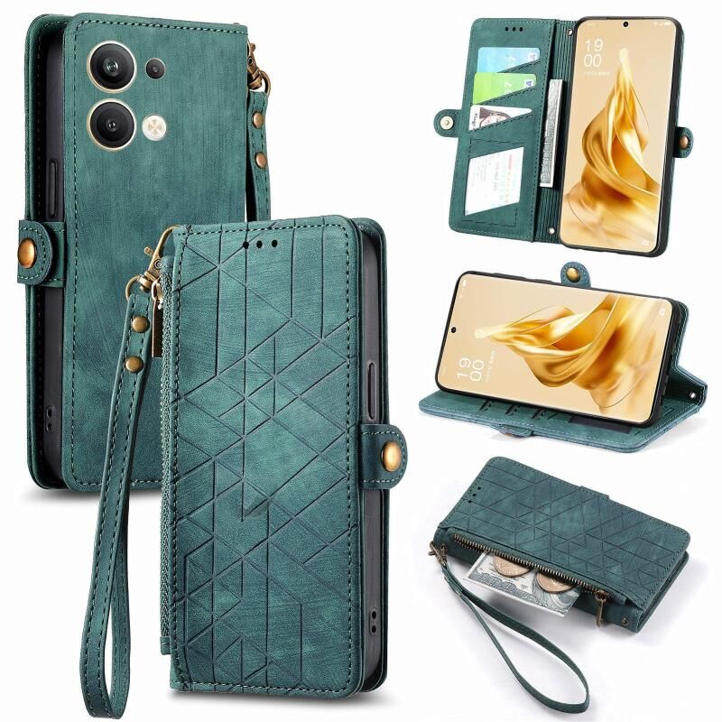Για OPPO Reno9 Pro + 5G γεωμετρική φερμουάρ πορτοφόλι πλευρά πόρπη δερμάτινη θήκη τηλεφώνου (πράσινο)