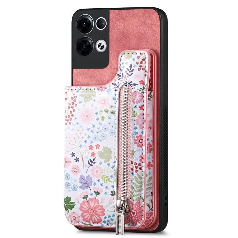 Για OPPO Reno9 Pro + 5G Ρετρό ζωγραφισμένο φερμουάρ πορτοφόλι πίσω τηλέφωνο υπόθεση (ρόζ)