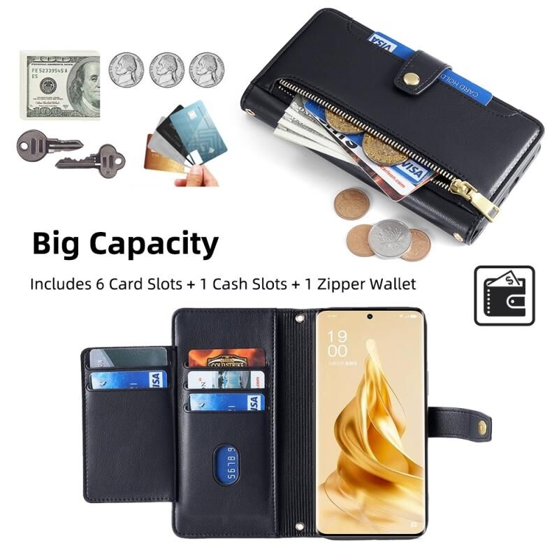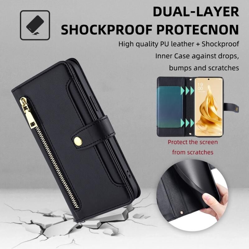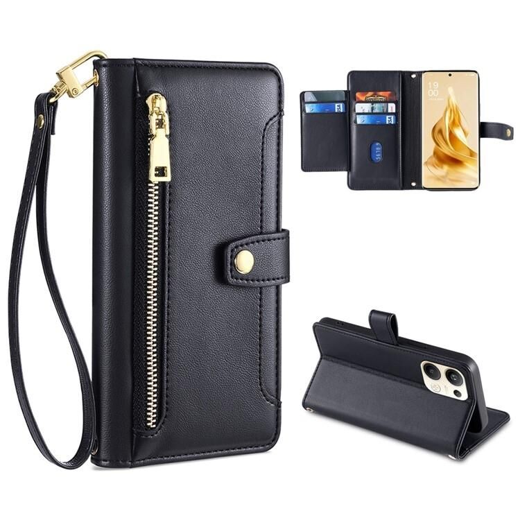 Θήκη τηλεφώνου δερμάτινη με φερμουάρ και σχέδιο αρνιού για OPPO Reno9 Pro+ 5G (Μαύρο)