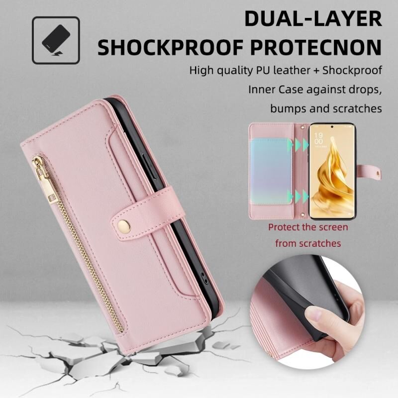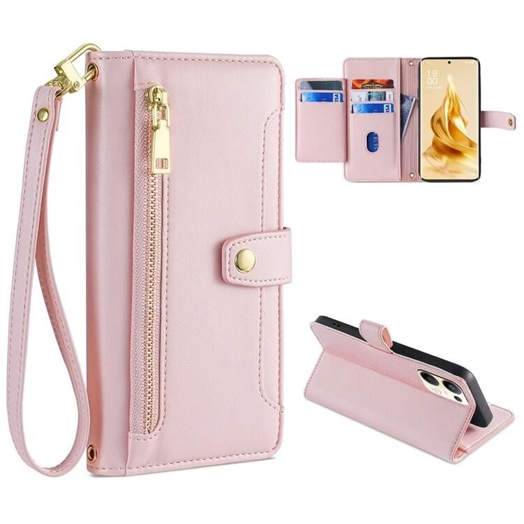 Θήκη τηλεφώνου δερμάτινη με φερμουάρ και σχέδιο αρνιού για OPPO Reno9 Pro+ 5G (ρόζ)