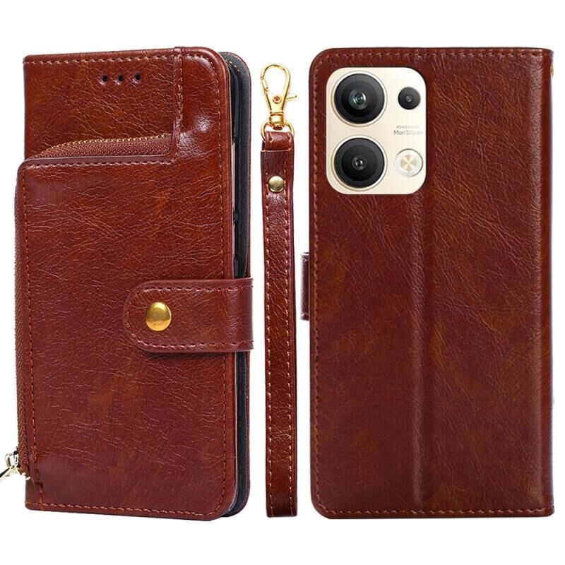 Για OPPO Reno9 Pro + 5G φερμουάρ τσάντα δερμάτινη θήκη τηλεφώνου (Καφέ)