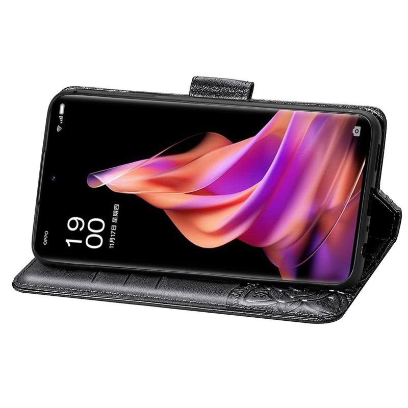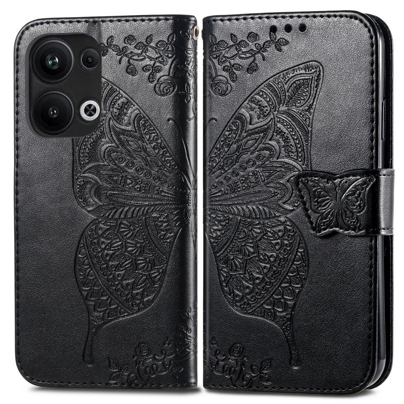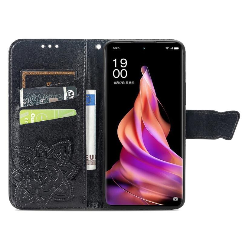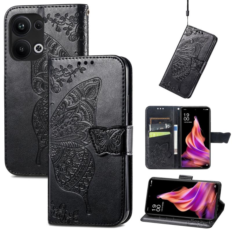 For OPPO Reno9 Pro+ Butterfly Love Flower Embossed Leather Phone Case(Black)