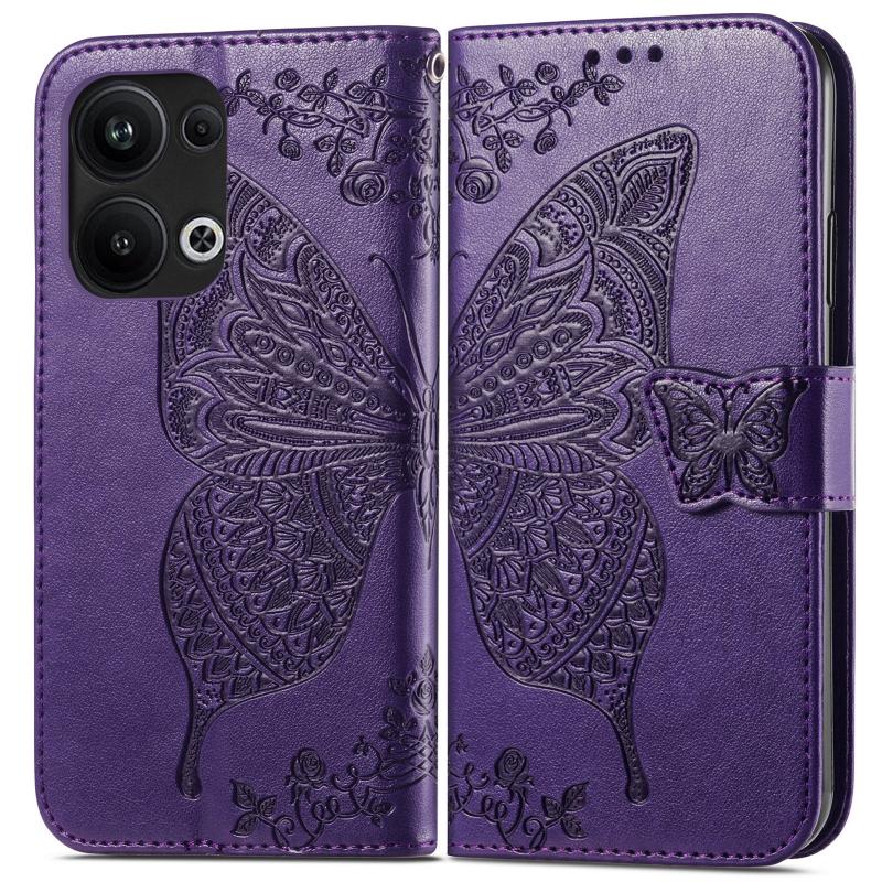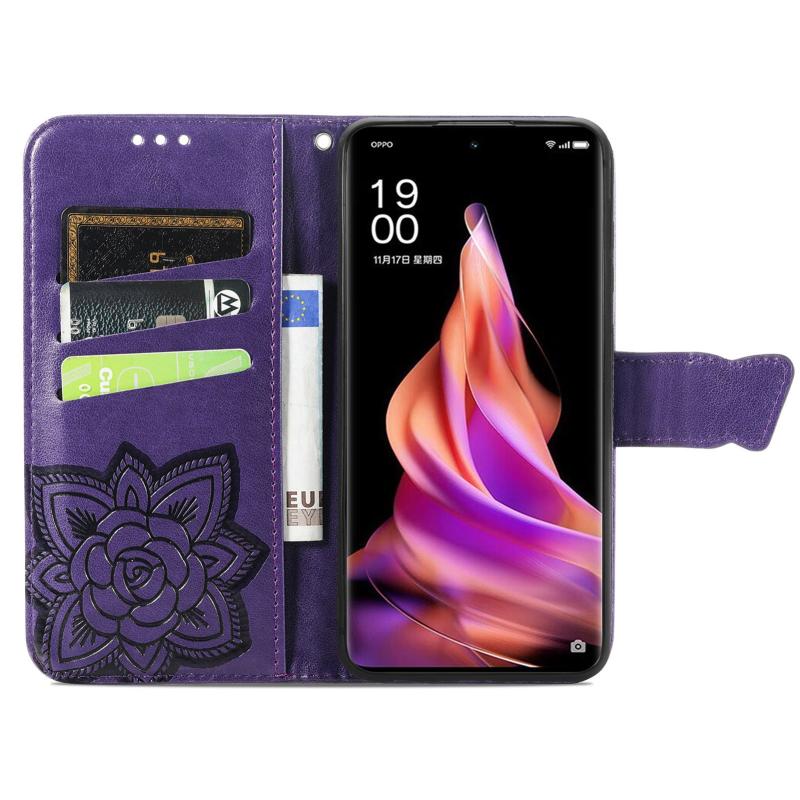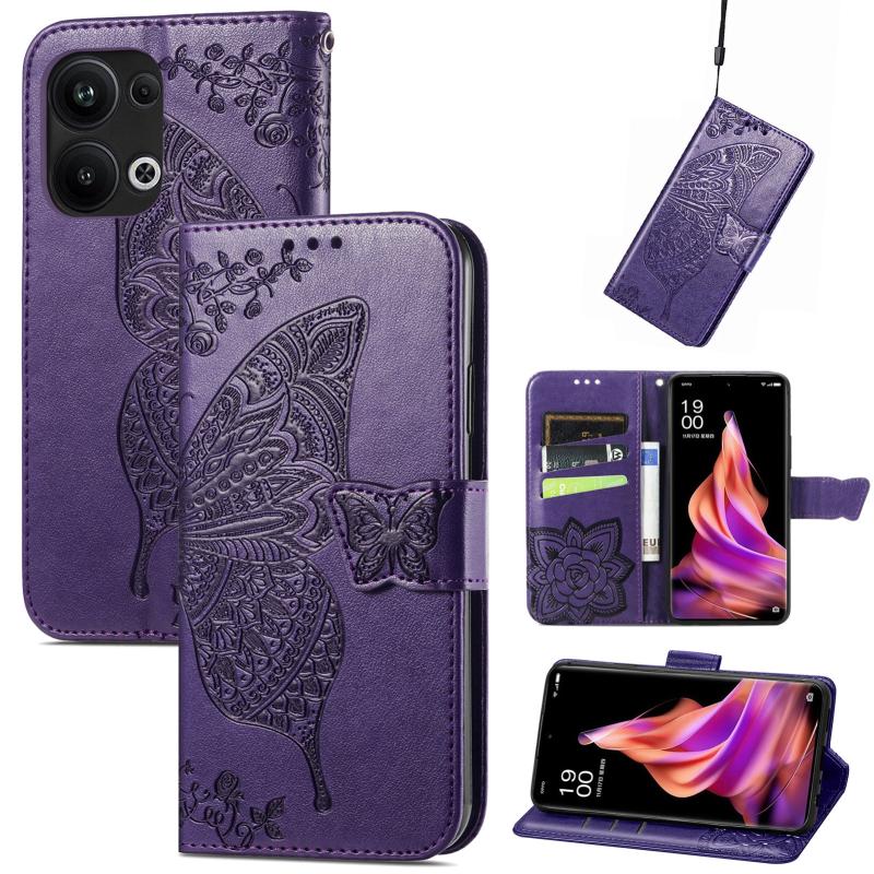 For OPPO Reno9 Pro+ Butterfly Love Flower Embossed Leather Phone Case(Purple)