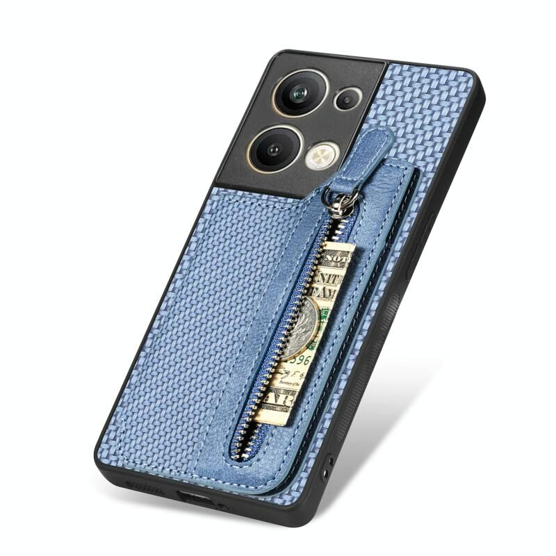 Για OPPO Reno9 Pro + Carbon Fiber Flip φερμουάρ πορτοφόλι τηλέφωνο υπόθεση (Μπλε)