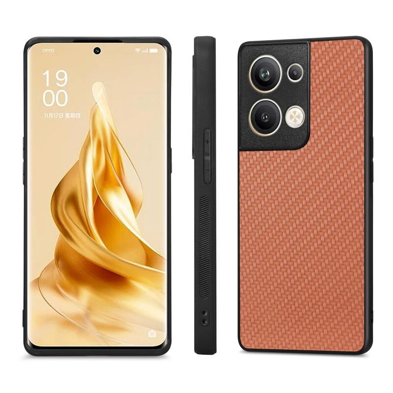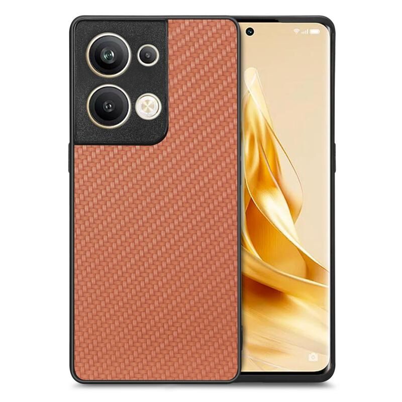 For OPPO Reno9 Pro+ Carbon Fiber Texture Leather Back Cover Phone Case(Brown)