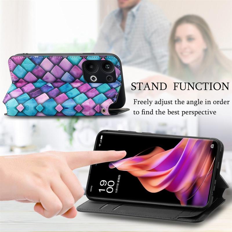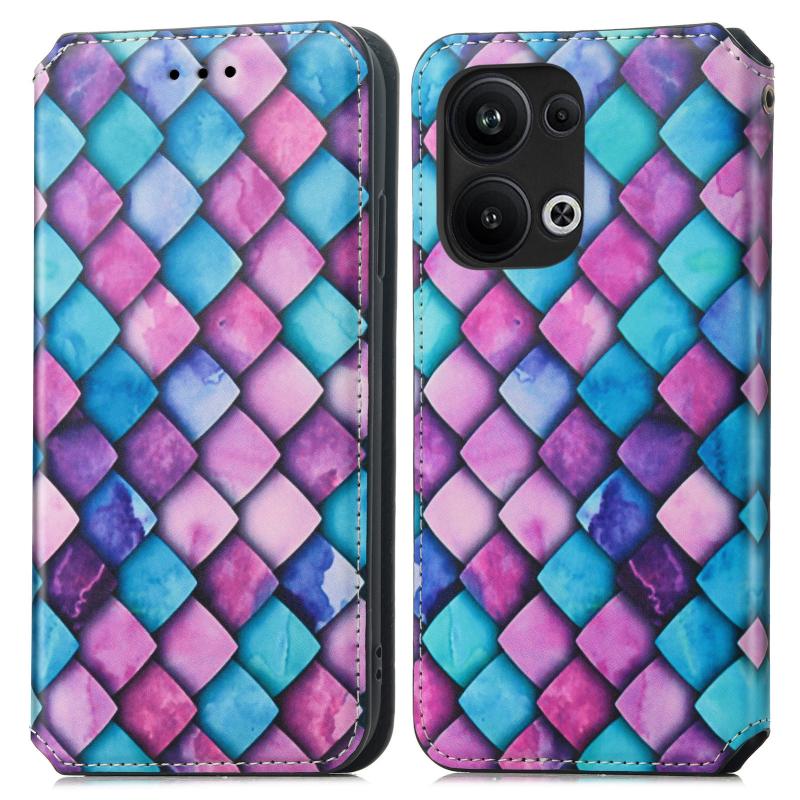 For OPPO Reno9 Pro+ CaseNeo Colorful Magnetic Leather Phone Case(Purple Scales)