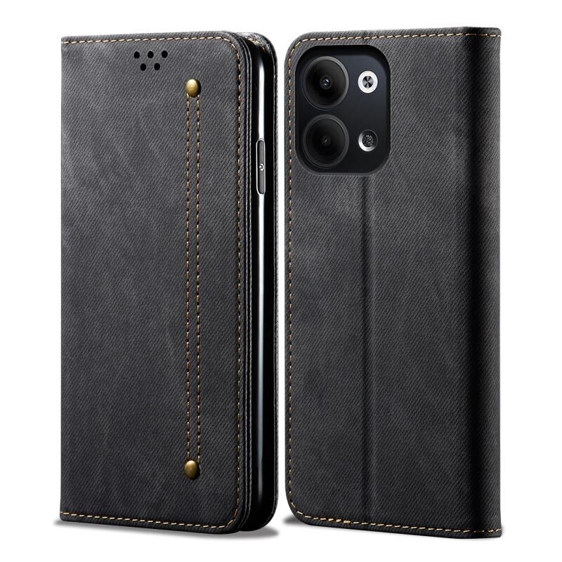 Για OPPO Reno9 Pro Denim Texture Δερμάτινη θήκη τηλεφώνου (Μαύρο)