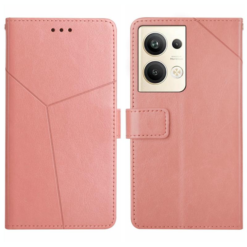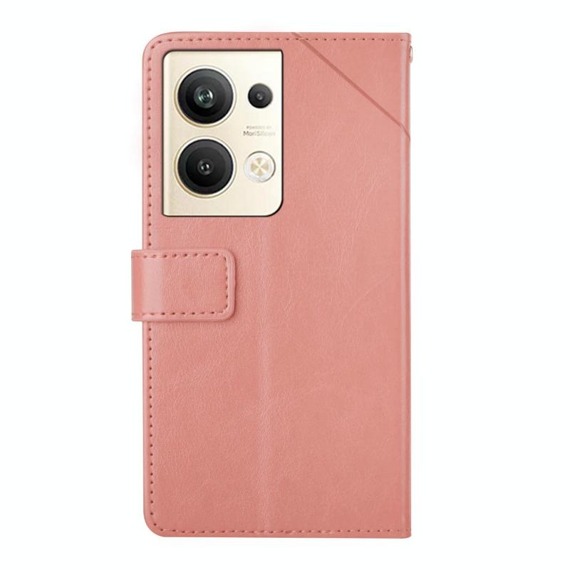 Θήκη τηλεφώνου από δέρμα με σχέδιο Y και πτυσσόμενη για OPPO Reno9 Pro+ HT01 (ρόζ)