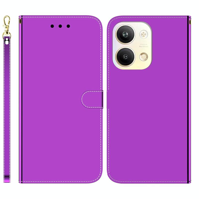 Θήκη τηλεφώνου από δερματίνη με απομίμηση καθρεπτικής επιφάνειας για OPPO Reno9 Pro (Μωβ)