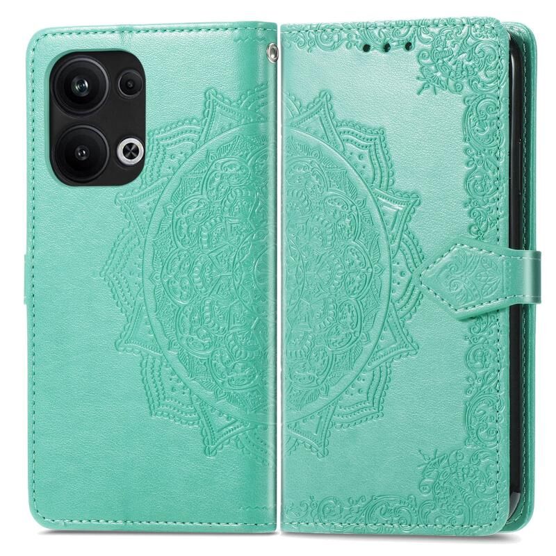 Για OPPO Reno9 Pro + Mandala λουλούδι ανάγλυφο δερμάτινη θήκη τηλεφώνου (πράσινο)
