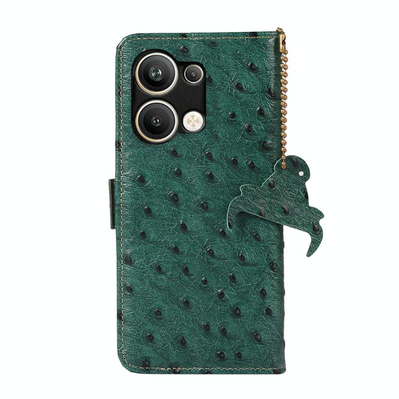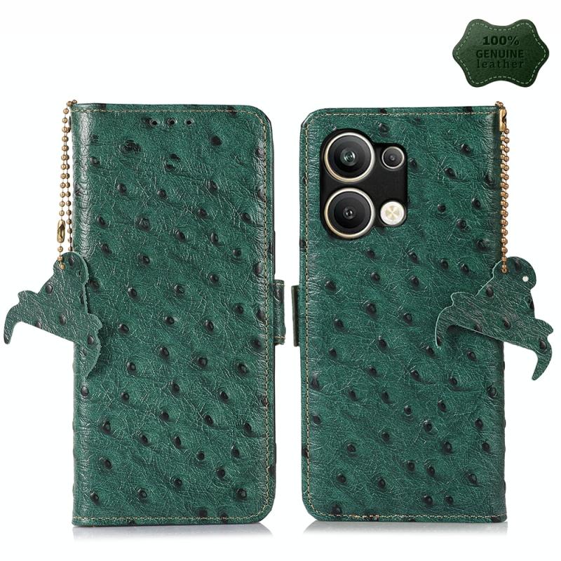 Θήκη τηλεφώνου από γνήσιο δέρμα με σχέδιο στρουθοκάμηλου για OPPO Reno9 Pro+ με προστασία RFID (πράσινο)