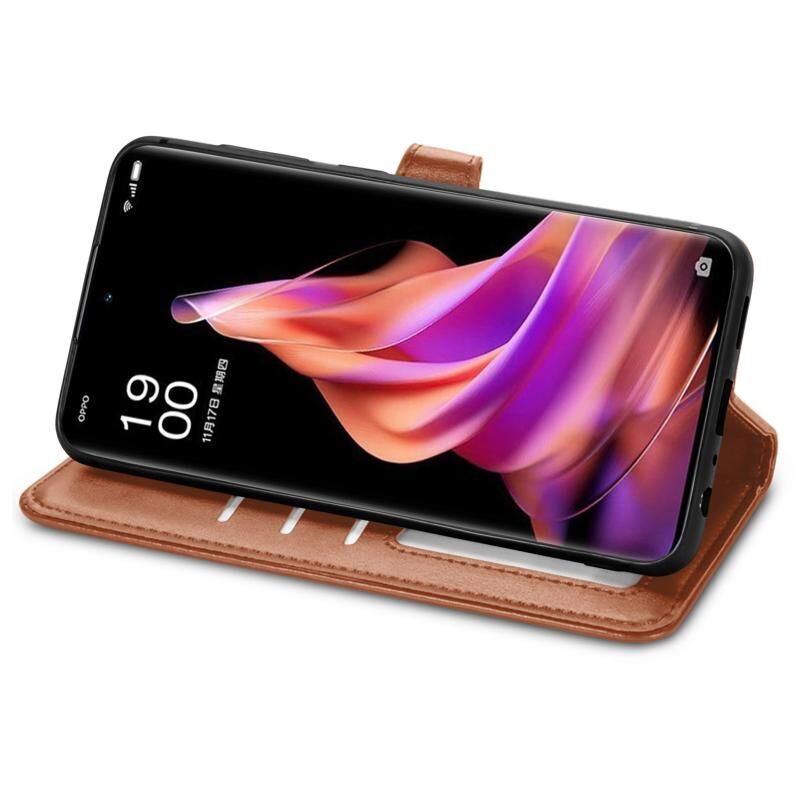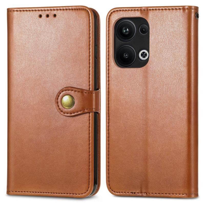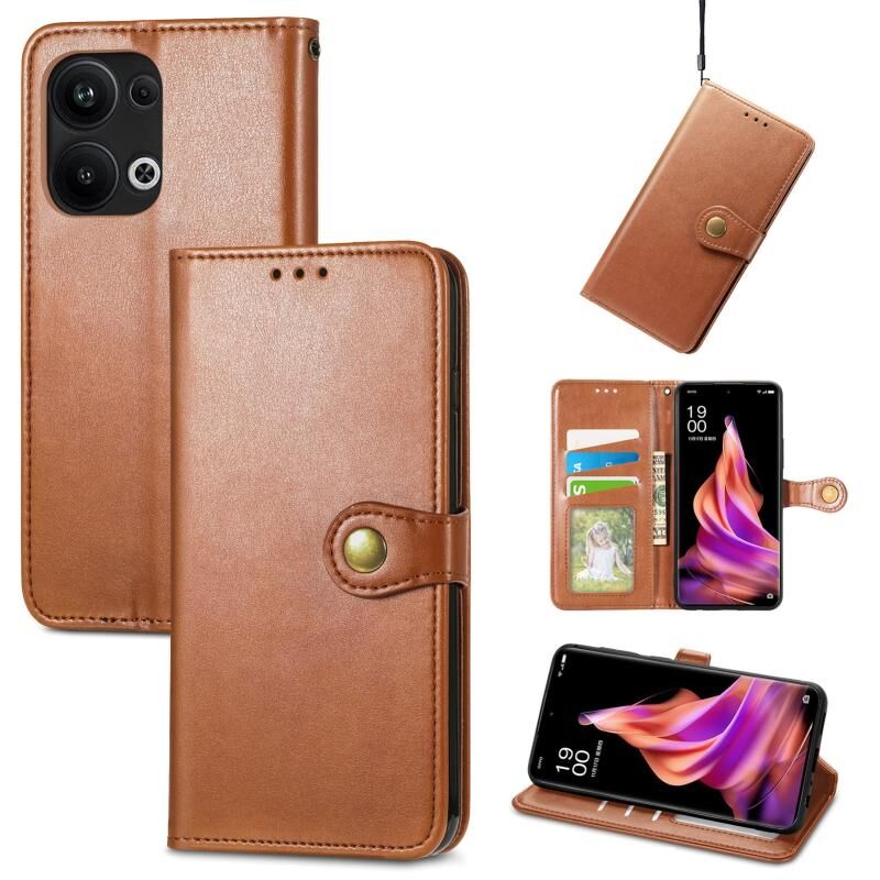 Για OPPO Reno9 Pro + Ρετρό στερεό χρώμα πόρπη δερμάτινη θήκη τηλεφώνου (Καφέ)