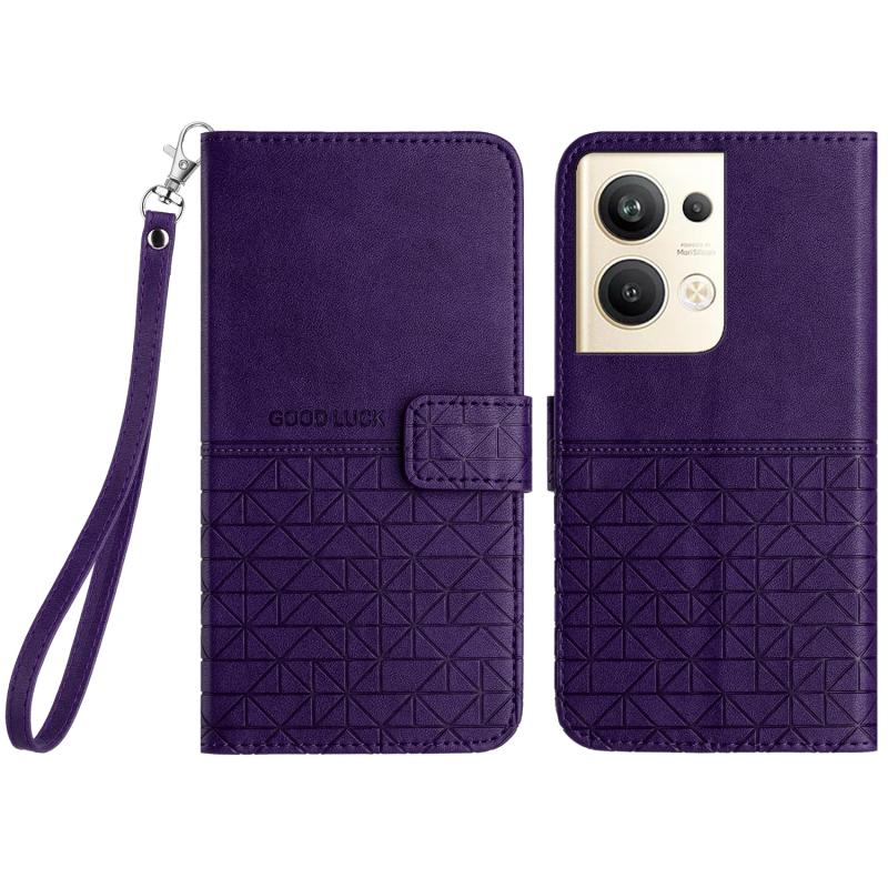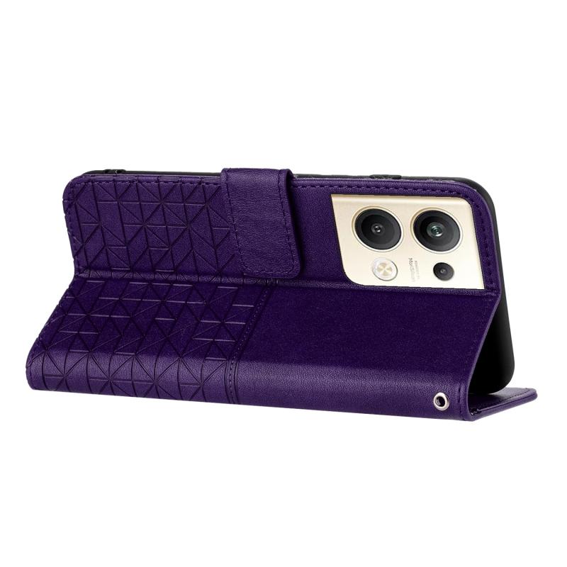 For OPPO Reno9 Pro+ Rhombic Texture Leather Phone Case with Lanyard(Purple)