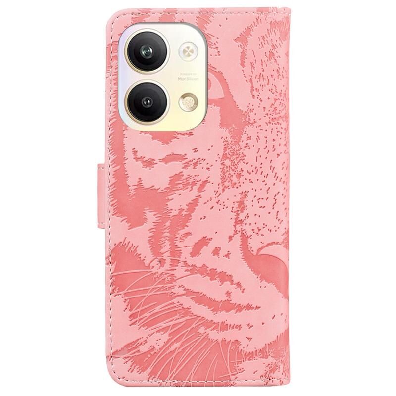 Θήκη τηλεφώνου από δέρμα με σχέδιο ανάγλυφου τίγρη για OPPO Reno9 Pro (Μαύρο)