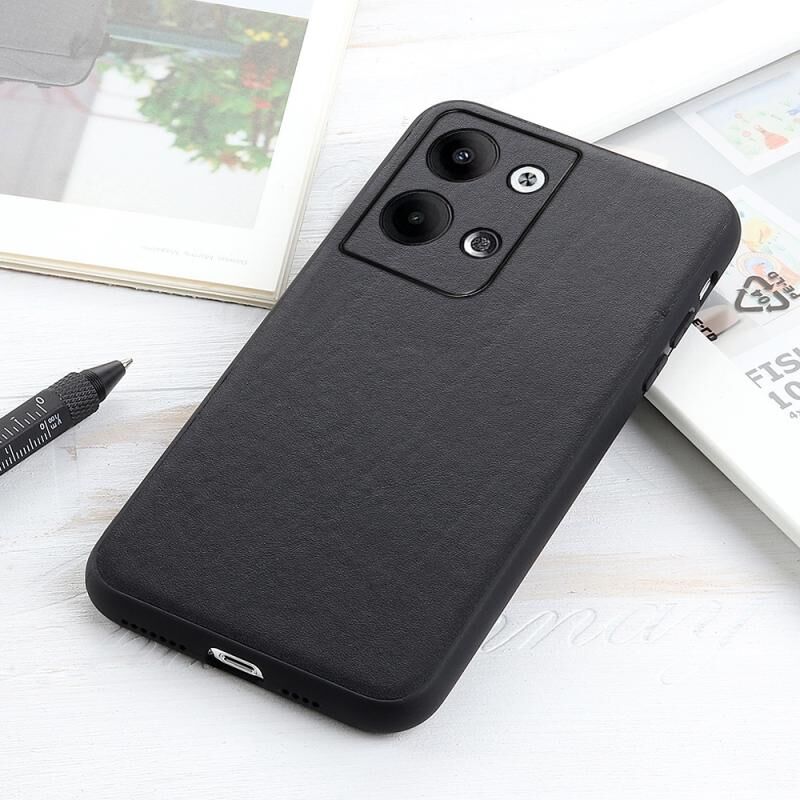 Θήκη τηλεφώνου από γνήσιο δέρμα αρνιού με ακριβείς οπές και υφή αρνιού για OPPO Reno9 / Reno9 Pro (Μαύρο)