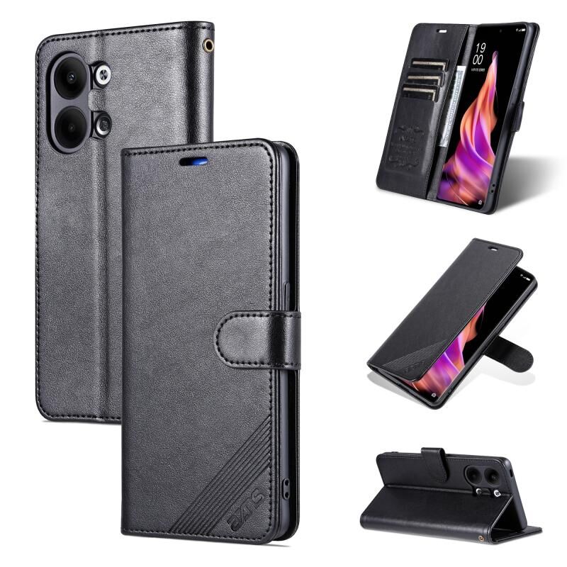 Θήκη τηλεφώνου από δέρμα με υφή δέρματος προβάτου για OPPO Reno9 / Reno9 Pro (Μαύρο) (AZNS)