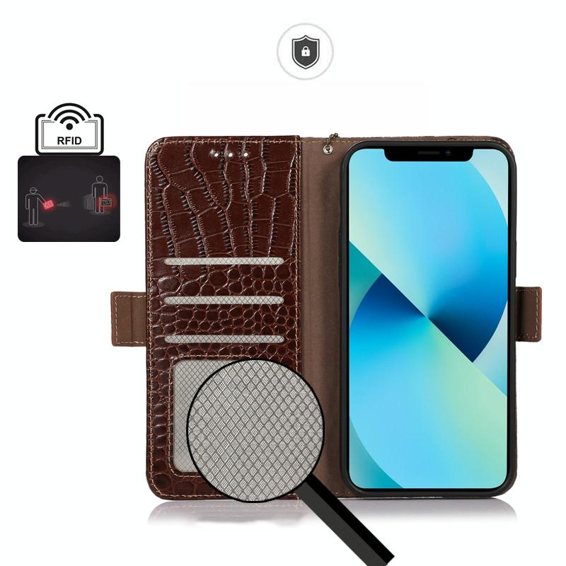 Θήκη τηλεφώνου από δέρμα αγελάδας με επικάλυψη κροκόδειλου για OPPO Reno9 / Reno9 Pro (Καφέ)