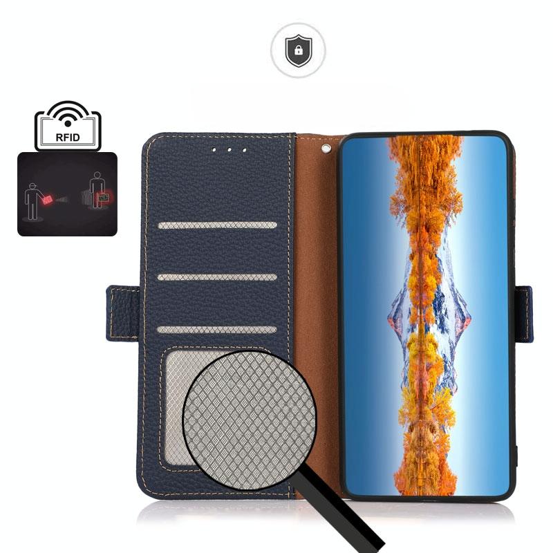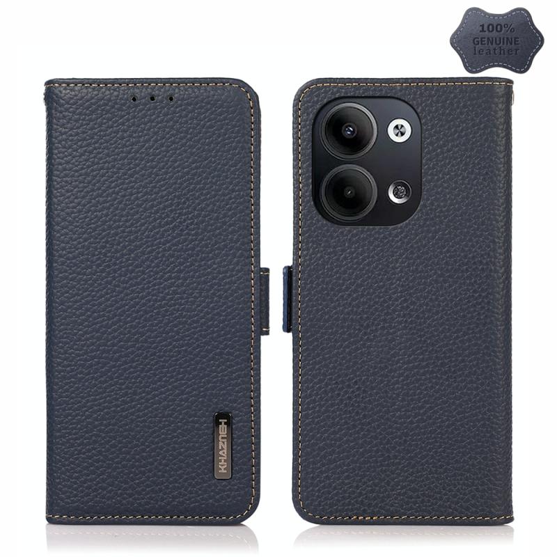 Θήκη τηλεφώνου με μαγνητικό κλείσιμο και γνήσιο δέρμα Litchi για OPPO Reno9 / Reno9 Pro KHAZNEH (Μπλε)