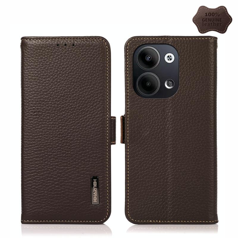 Θήκη τηλεφώνου με μαγνητικό κλείσιμο και γνήσιο δέρμα Litchi για OPPO Reno9 / Reno9 Pro KHAZNEH (Καφέ)