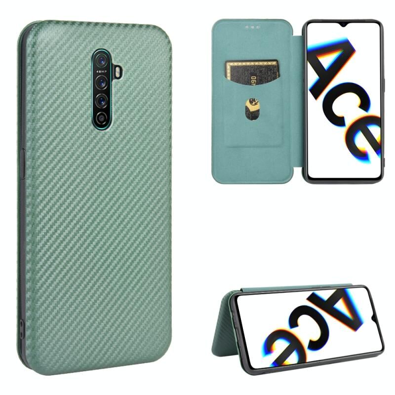 Για OPPO Rnoe Ace Carbon Fiber υφή οριζόντια Flip TPU + PC + PU δέρμα υπόθεση με υποδοχή κάρτας (πράσινο)