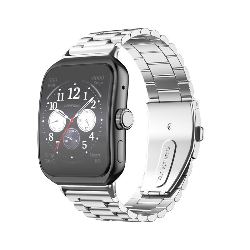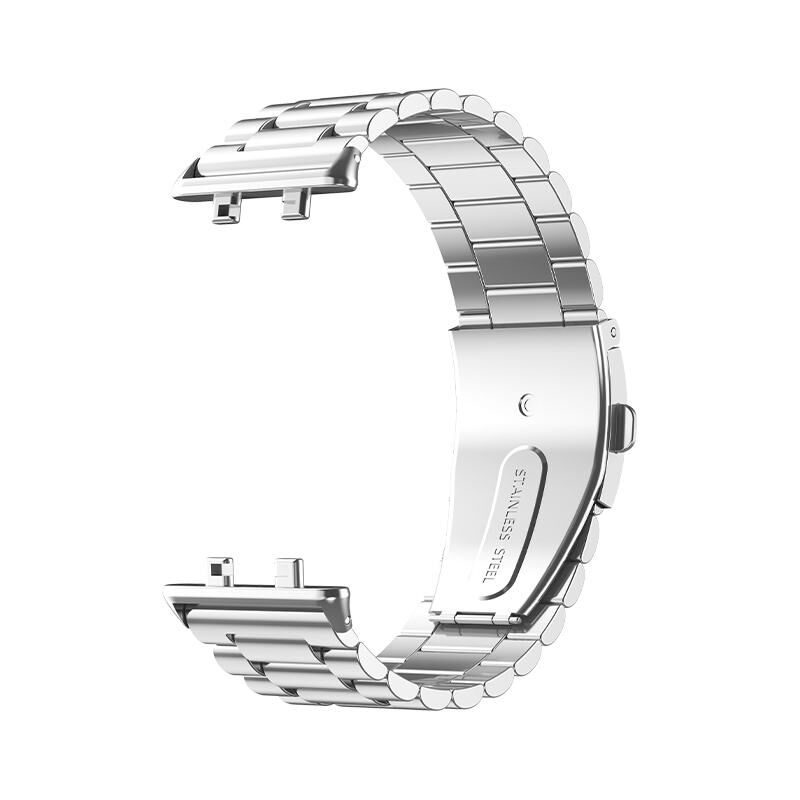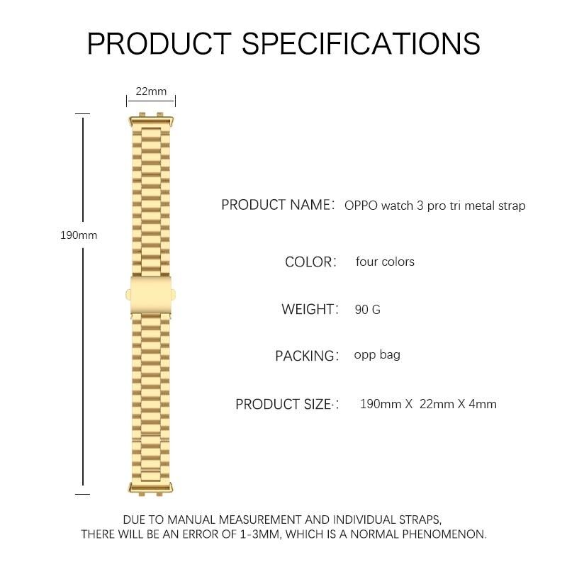 Για το OPPO Watch 3 Pro Τρεις χάντρες επίπεδη πόρπη από ανοξείδωτο χάλυβα ρολόι μπάντα (ασημί)