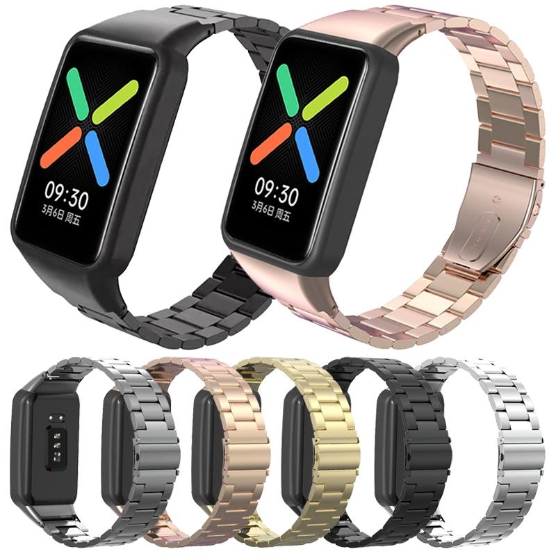 For OPPO Watch Free NFC Stainless Steel Three-bead Watch Band(Silver)
