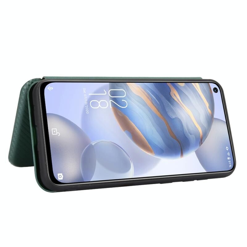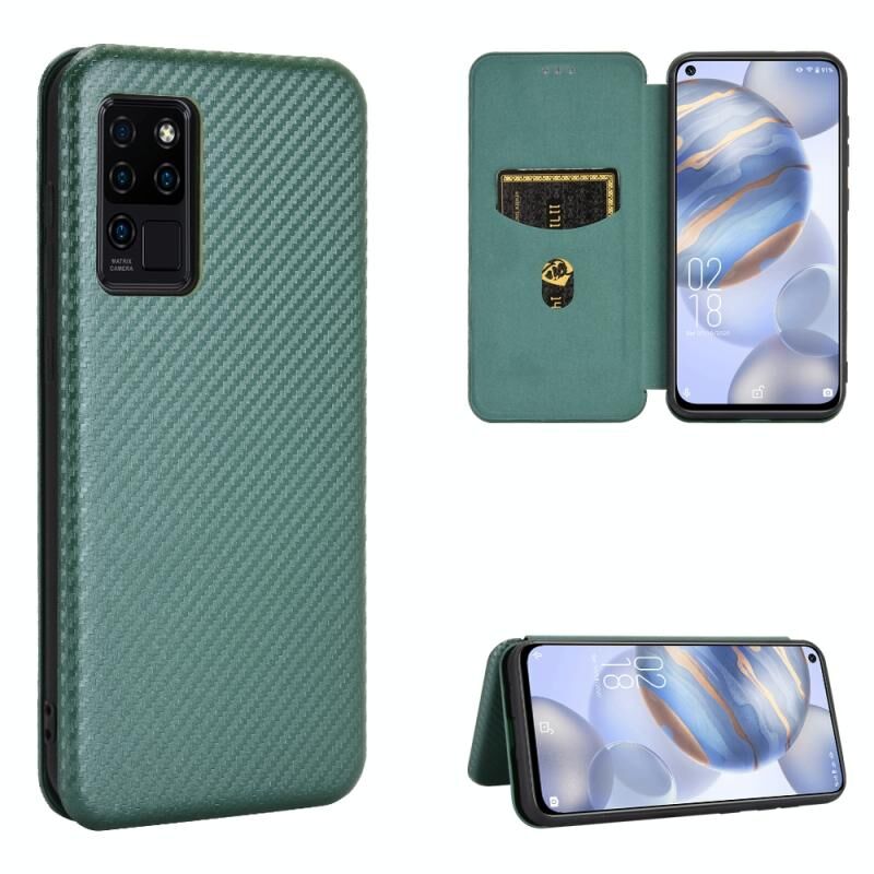 Για Oukitel C21 Carbon Fiber υφή οριζόντια Flip TPU + PC + PU δέρμα υπόθεση με υποδοχή κάρτας (πράσινο)