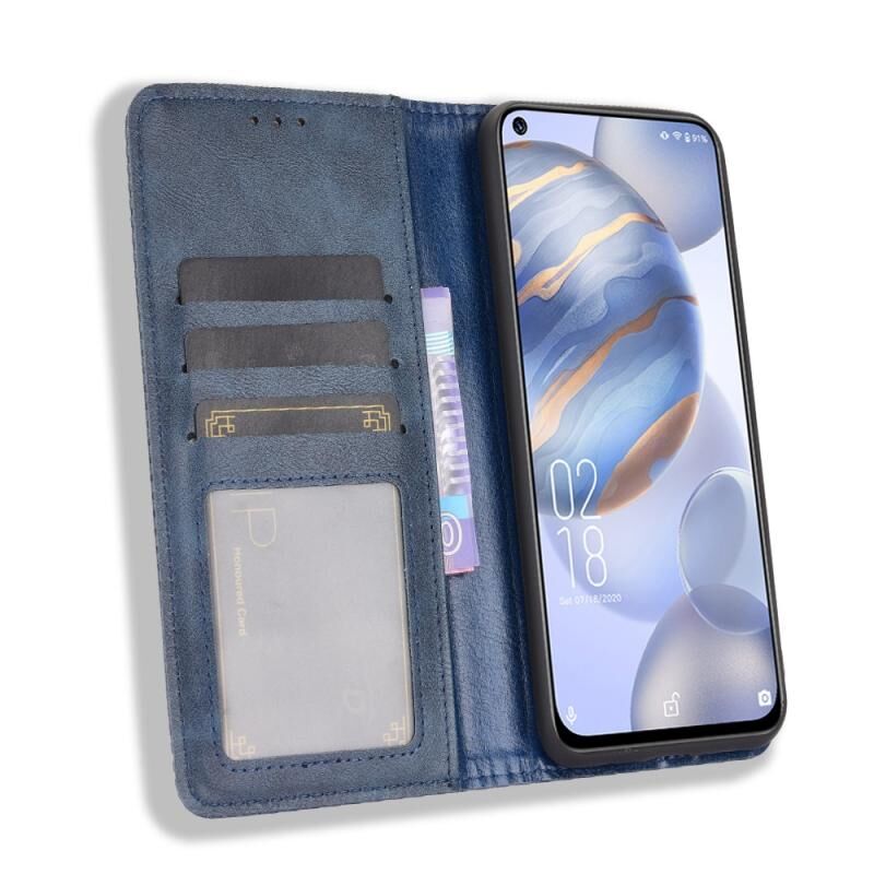Για Oukitel C21 Μαγνητική πόρπη Retro Crazy Horse Υφή οριζόντια Flip δερμάτινη θήκη με κάτοχο & υποδοχές καρτών & πλαίσιο φωτογραφιών (μπλε)