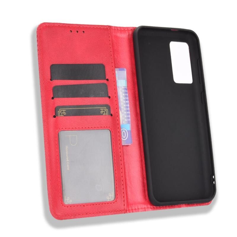 Για Oukitel C21 Μαγνητική πόρπη Retro Crazy Horse Υφή οριζόντια Flip δερμάτινη θήκη με κάτοχο & υποδοχές καρτών & πλαίσιο φωτογραφιών (κόκκινο)