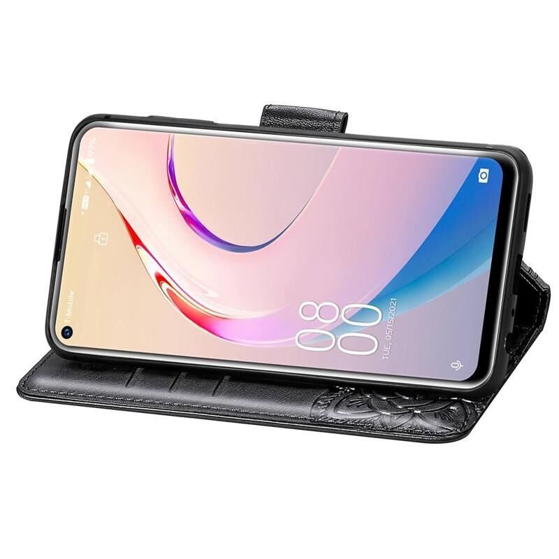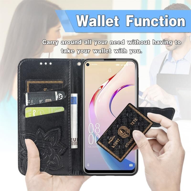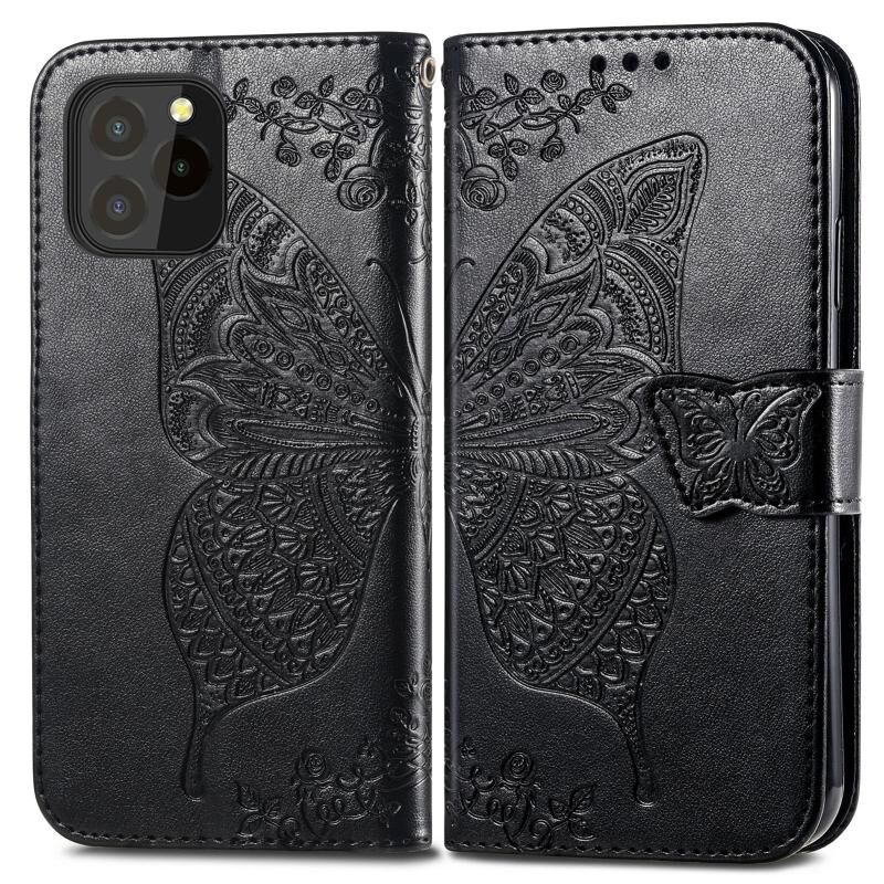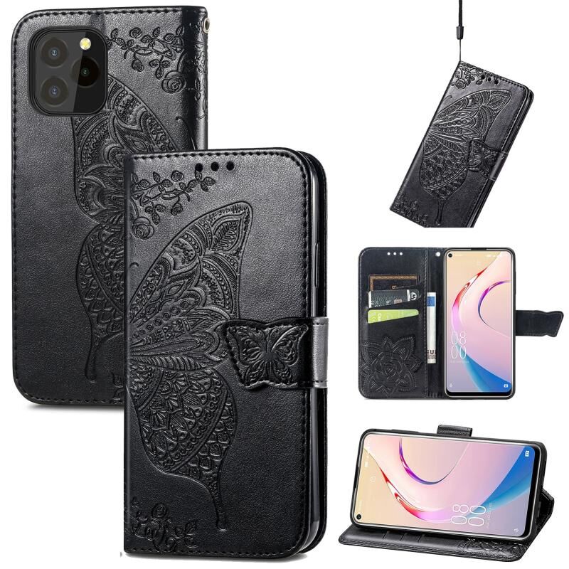 Θήκη Oukitel C21 Pro Butterfly Love Flower ανάγλυφη οριζόντια δερμάτινη με βάση & υποδοχές καρτών & πορτοφόλι & κορδόνι (Μαύρο)