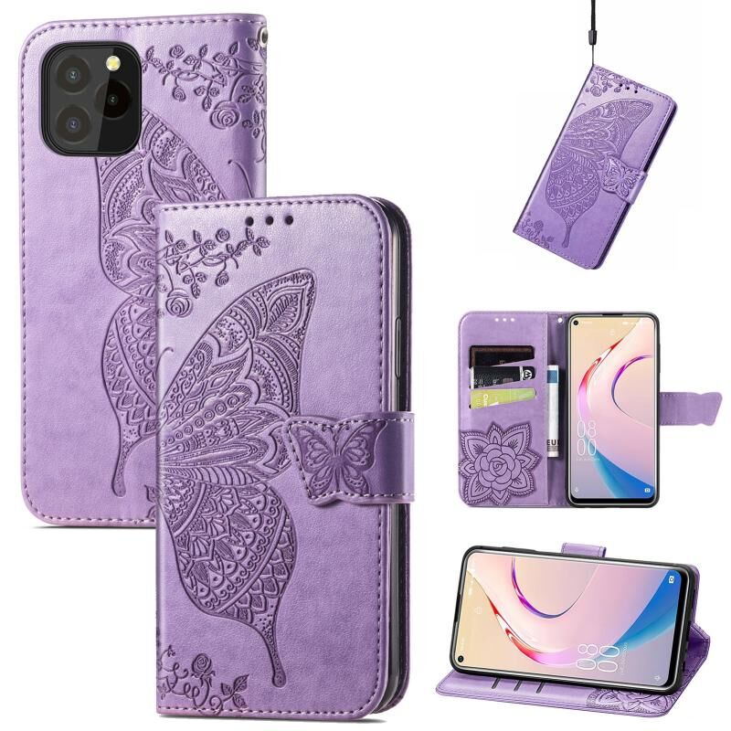 Θήκη Oukitel C21 Pro Butterfly Love Flower ανάγλυφη οριζόντια δερμάτινη με βάση & υποδοχές καρτών & πορτοφόλι & κορδόνι (Μαύρο)