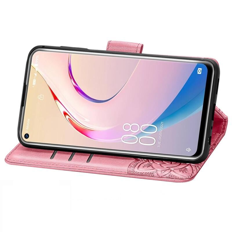 Θήκη Oukitel C21 Pro Butterfly Love Flower ανάγλυφη οριζόντια δερμάτινη με βάση & υποδοχές καρτών & πορτοφόλι & κορδόνι (Μαύρο)