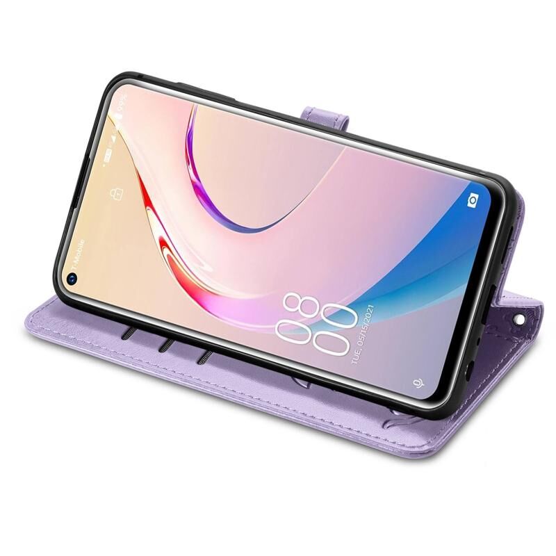 Θήκη δέρματος οριζόντιας αναδίπλωσης για Oukitel C21 Pro με χαριτωμένο σχέδιο ανάγλυφου γάτας και σκύλου, με βάση στήριξης & υποδοχές καρτών & πορτοφόλι & κούμπωμα καρτούν & κορδόνι (Μωβ)