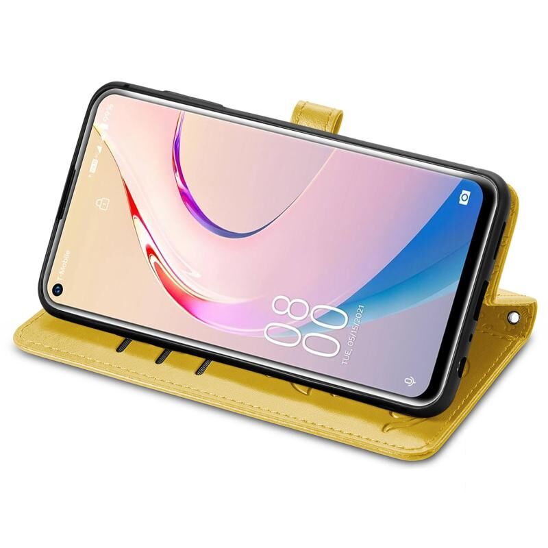 Θήκη δέρματος οριζόντιας αναδίπλωσης για Oukitel C21 Pro με χαριτωμένο σχέδιο ανάγλυφου γάτας και σκύλου, με βάση στήριξης & υποδοχές καρτών & πορτοφόλι & κούμπωμα καρτούν & κορδόνι (Κίτρινο)