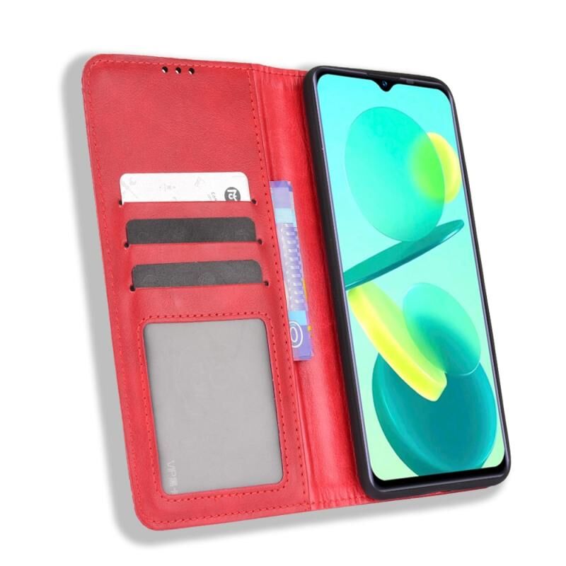 Για Oukitel C25 Μαγνητική πόρπη Retro Υφή δερμάτινη θήκη (κόκκινο)
