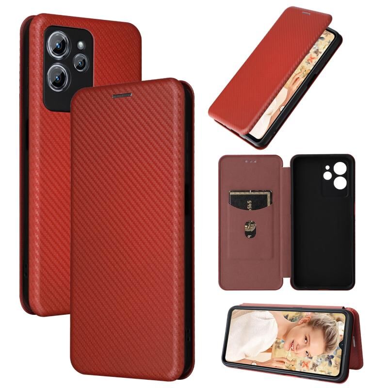 For Oukitel C32 Carbon Fiber Texture Flip Leather Phone Case(Brown)