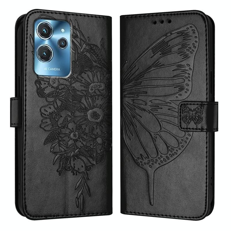 Για Oukitel C32 ανάγλυφη πεταλούδα δερμάτινη θήκη τηλεφώνου (μαύρο)