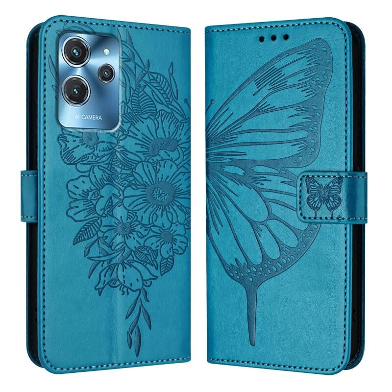 Για Oukitel C32 ανάγλυφη πεταλούδα δερμάτινη θήκη τηλεφώνου (μπλε)