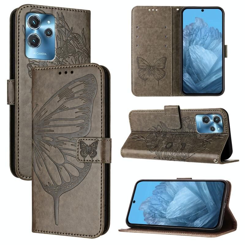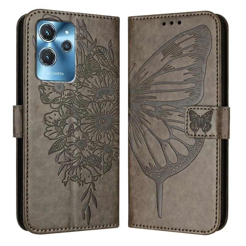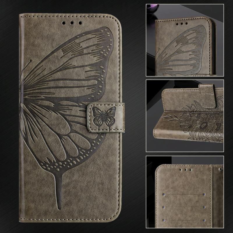 Για Oukitel C32 ανάγλυφη πεταλούδα δερμάτινη θήκη τηλεφώνου (γκρι)