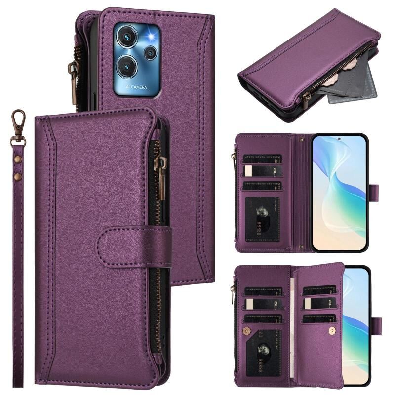 For Oukitel C32 Magnetic Closure 9 Card Slots Zipper Leather Case with Hand Strap(Purple)