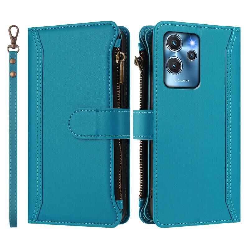 For Oukitel C32 Magnetic Closure 9 Card Slots Zipper Leather Case with Hand Strap(Turquoise)