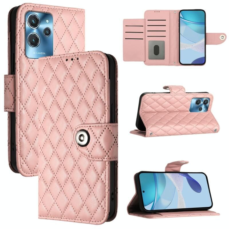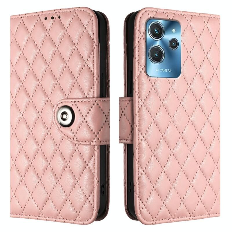 Για Oukitel C32 Rhombic υφή Flip υπόθεση τηλεφώνου δέρμα με κορδόνι (Coral Pink)