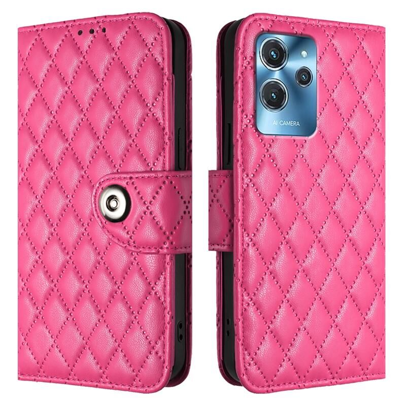 Για το Oukitel C32 Rhombic Texture Flip δερμάτινη θήκη τηλεφώνου με κορδόνι (Rose Red)