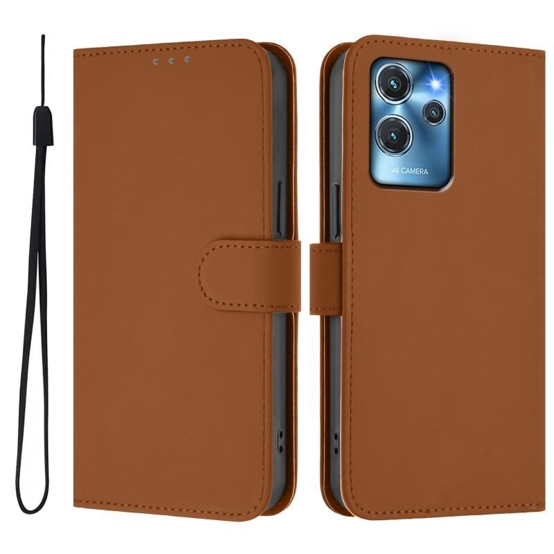 For Oukitel C32 Skin Feel Solid Color Leather Phone Case with Lanyard(Brown)