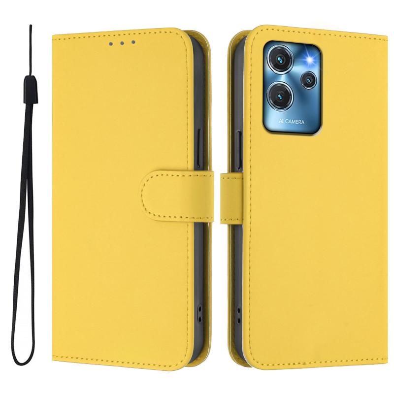 For Oukitel C32 Skin Feel Solid Color Leather Phone Case with Lanyard(Lemon Yellow)