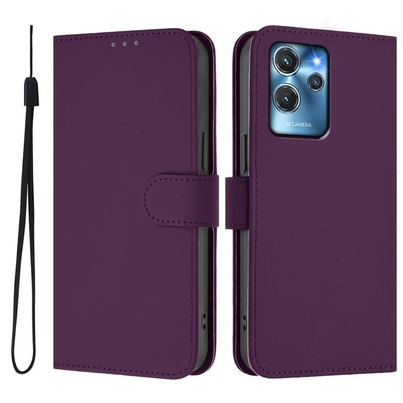 For Oukitel C32 Skin Feel Solid Color Leather Phone Case with Lanyard(Violet)