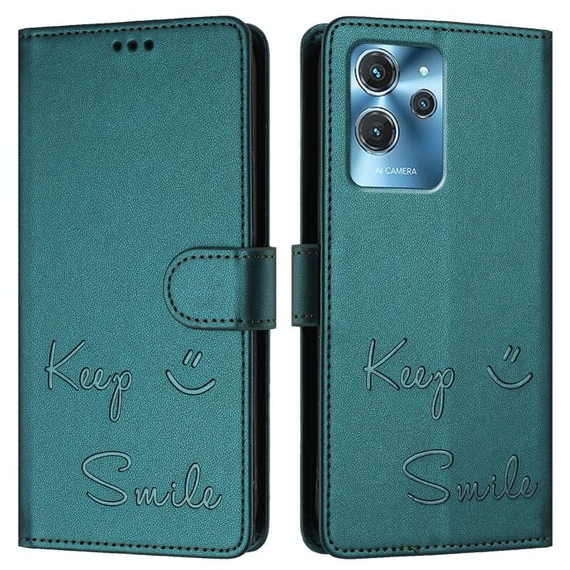 Για Oukitel C32 Χαμόγελο ανάγλυφο RFID δερμάτινη θήκη τηλεφώνου (Πράσινο παγώνι)